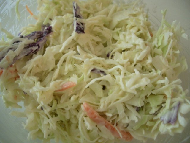 whisk together the mayo, sour cream, lemon juice, celery seed and salt and pepper. keep the sauce in the refrigerator until you’re ready to serve. right before serving, pour over the cabbages and carrots. (don’t try to mix this ahead because it can get super soggy. you can make the sauce a day ahead though).