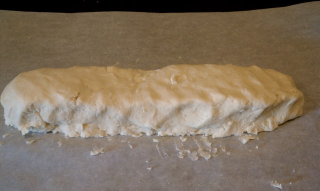 in a small bowl, whisk together the flour, baking powder, baking soda and salt and set aside. in the bowl of a stand mixer fitted with the paddle attachment, cream together the butter, shortening, and sugar until light and fluffy. add the egg and vanilla and mix until combined. add the flour mixture and mix until no flour is visible, don’t over-mix. dump out the dough onto a piece of parchment or wax paper and form into a log. roll up the parchment and freeze the dough for 1 hour.